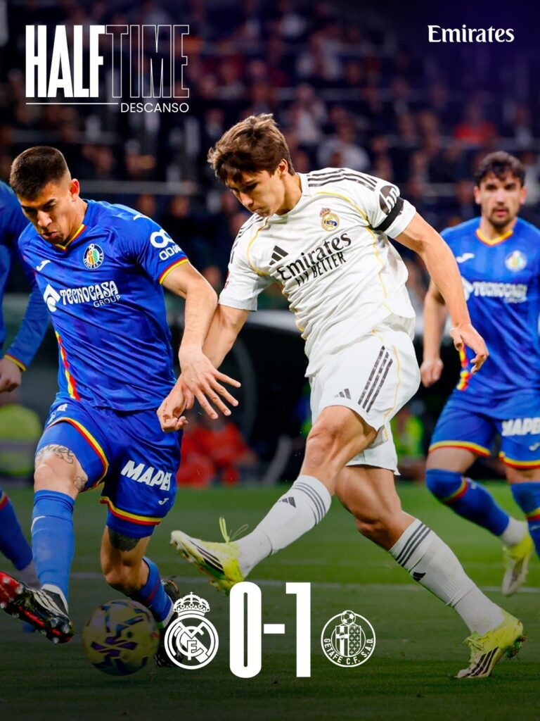 Com o resultado, o Real segue na vice-liderança com 60 pontos, quatro a menos que o líder Barcelona, que venceu o Villarreal no último sábado por 4-1. O Getafe, por sua vez, subiu para o 11° lugar e tem 32 pontos.